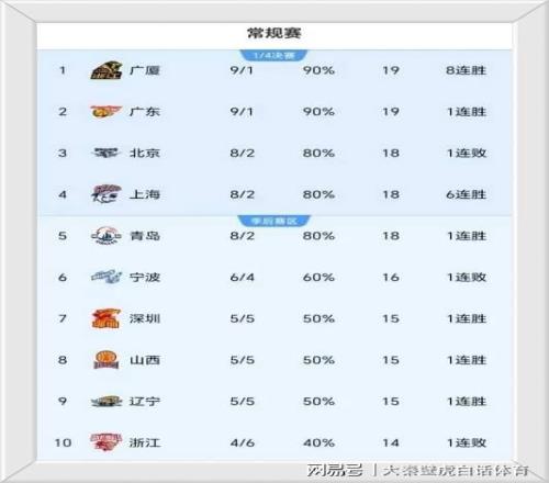 ③、7-9名的深圳、山西、辽宁队,同为5胜5负,季后赛争夺激烈。