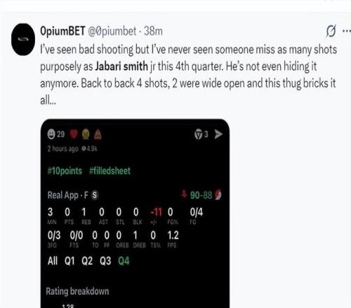 火箭球迷:小贾是我见过最糟糕的表现,在末节连续打铁,他装都不装了,四个大空位都不进。