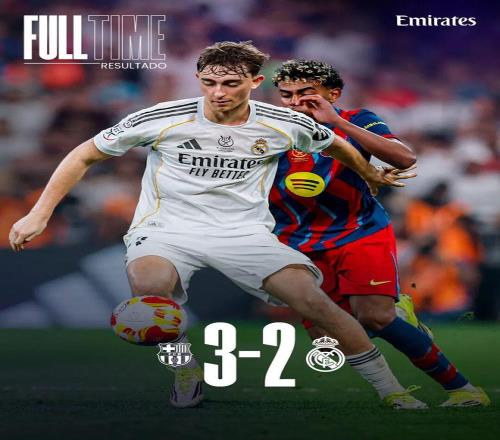 比赛结束,皇家马德里不敌老对手巴塞罗那,憾失本季西超杯。